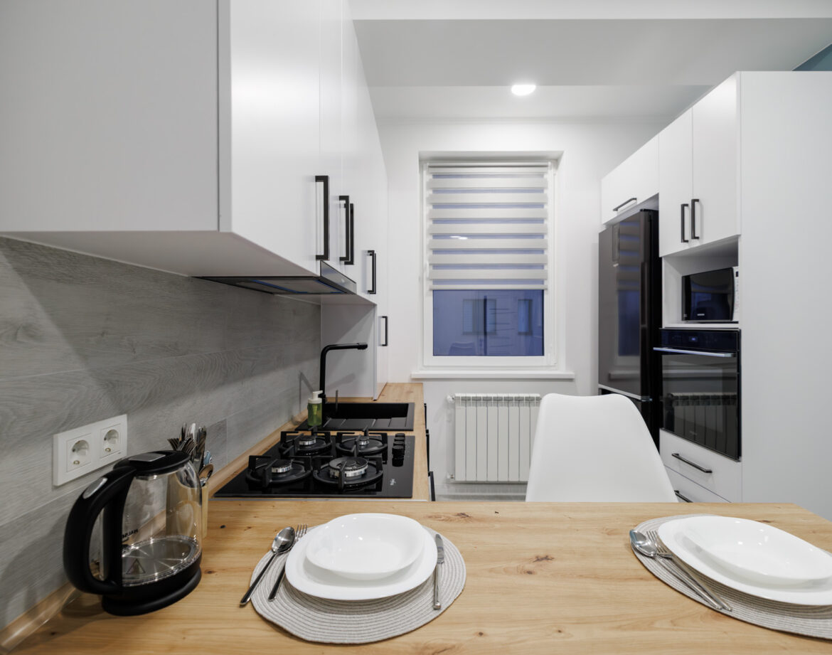 The kitchen is spacious and fully equipped, offering plenty of room — perfect for both short stays and longer visits.