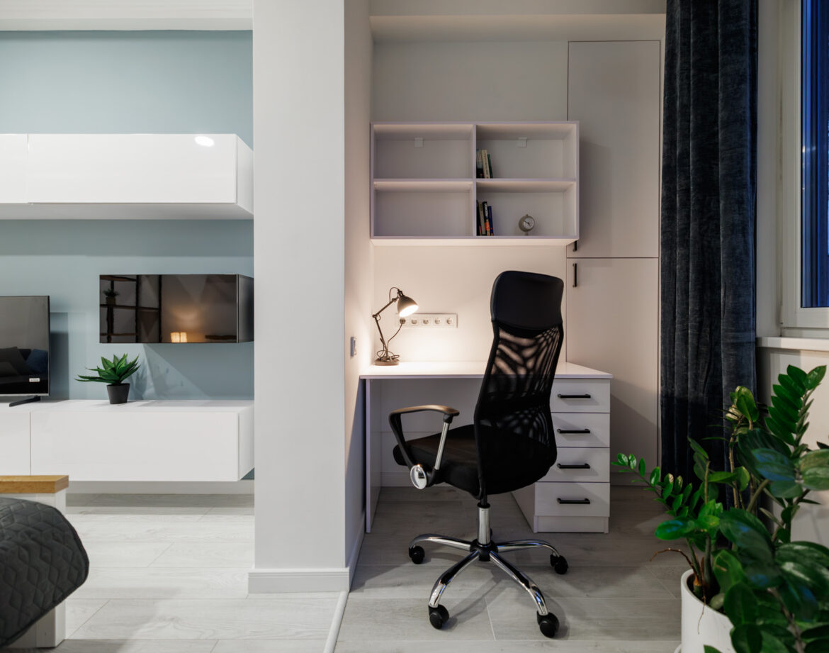 The apartment features a dedicated workspace, plenty of natural light, and a relaxing atmosphere — ideal for unwinding after a day in the city.