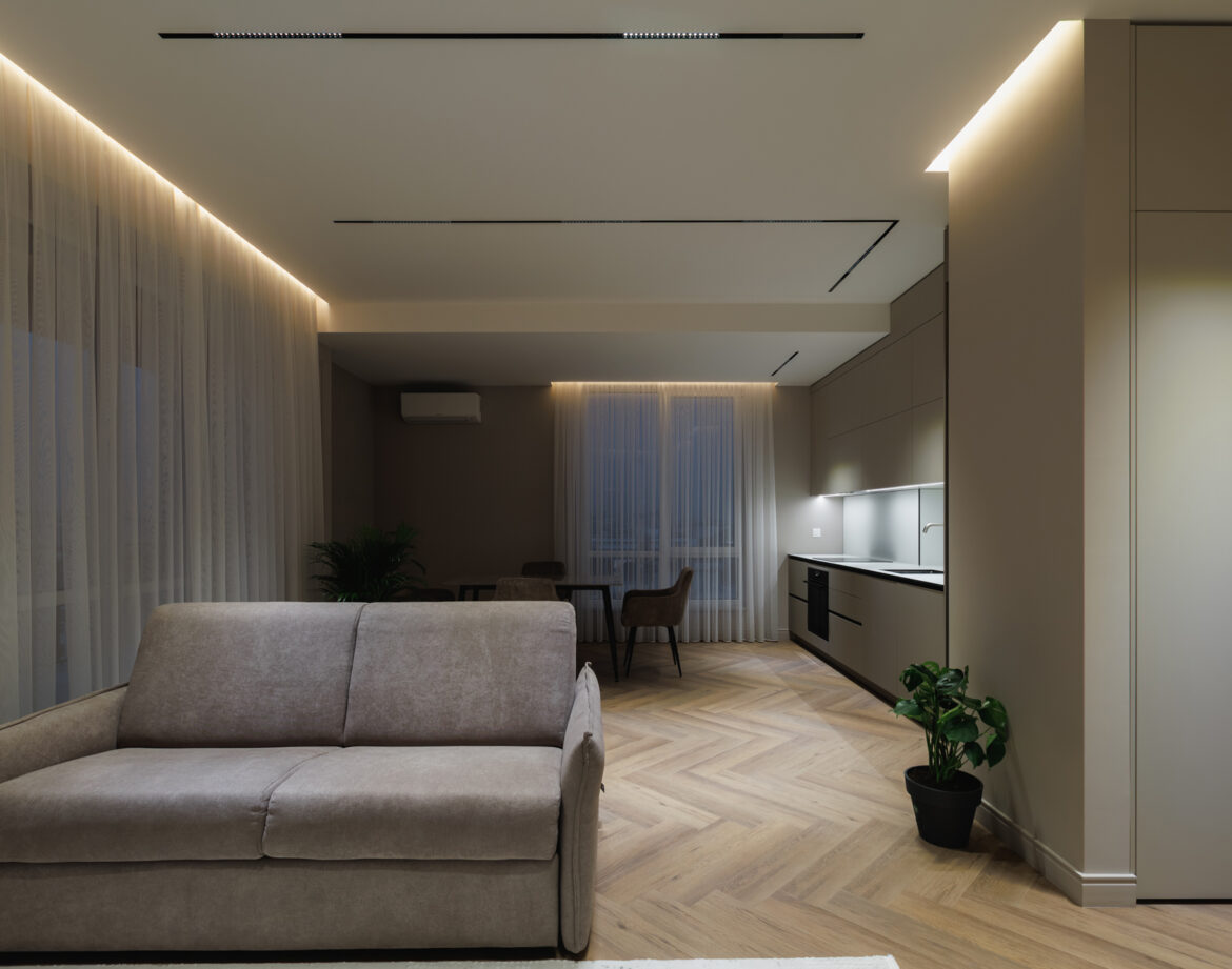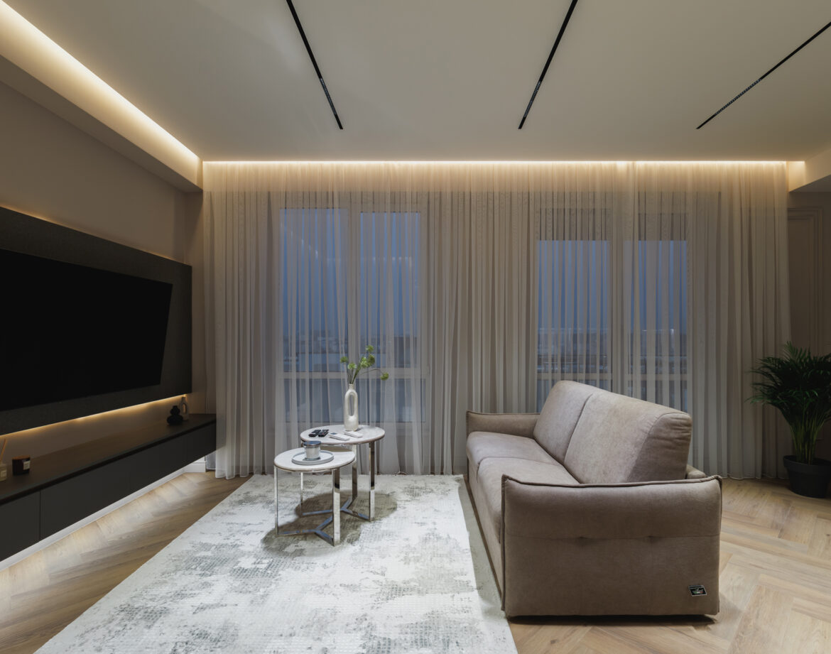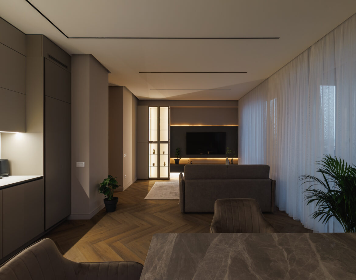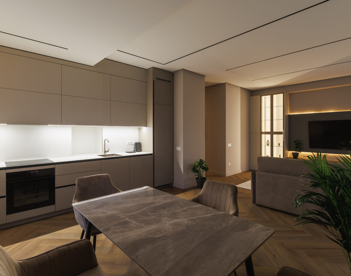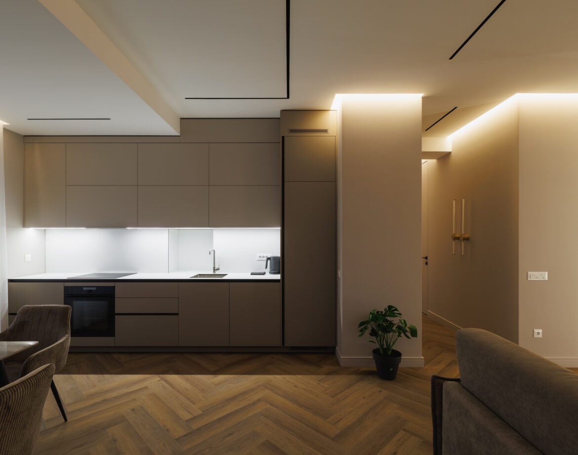 The apartment’s refined aesthetics and warm ambiance create the perfect environment for short stays or long-term visits.